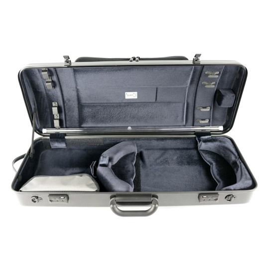 A new viola case from Bam that has a sleek, modern design and offers exceptional protection. A combination of high performance materials forms a protective three-ply shell. The shock resistant ABS metallic exterior covers a light yet rigid AIREX core. The PVC inner layer is lined with black velvet and provides unequalled protection. The suspension system inside the case is made of injected and moulded foam cushions. Other features include a detachable accessory pocket, ample D-rings, 2 shoulder straps, a backpack option, and a subway strap.