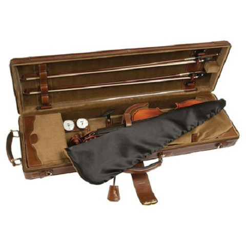 Classy, luxury leather violin case with velvety interior. Comes with a brown leather carrying strap, and nylon slip cover to protect the exterior.